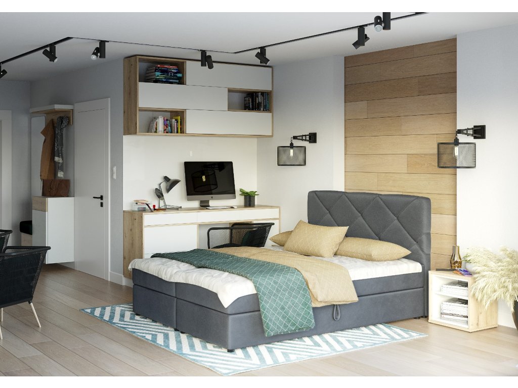 Postel RAVEN je elegantní čalouněný model, který se vyznačuje výrazným opěradlem hlavy s geometrickým prošíváním.