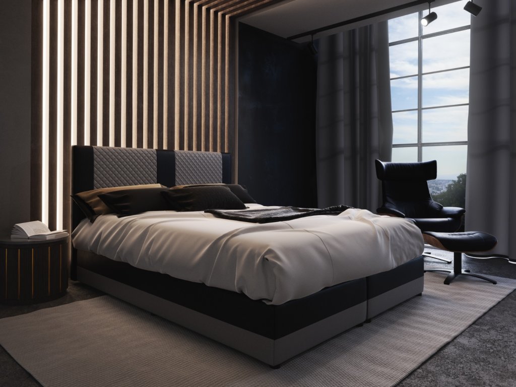 Kontinentální postel RENLO je moderní model, který se vyznačuje dynamickým designem a kontrastními barevnými kombinacemi.